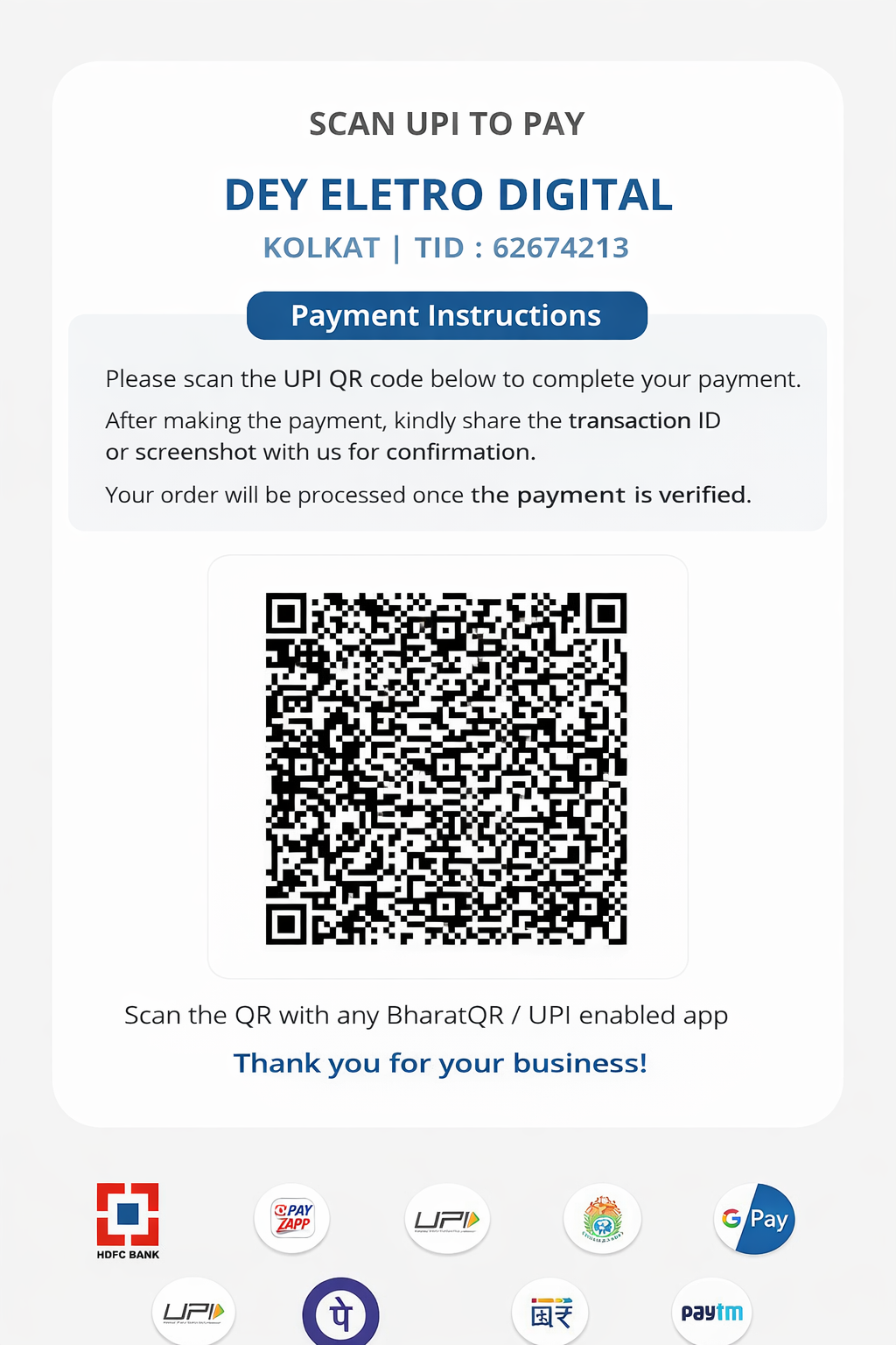 After making the payment, kindly share the transaction ID or screenshot with us for confirmation.